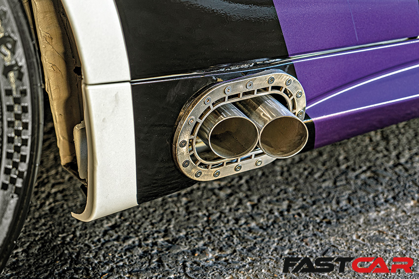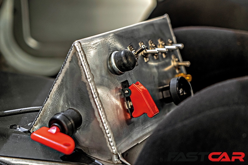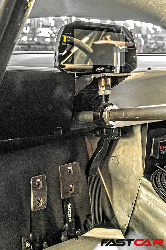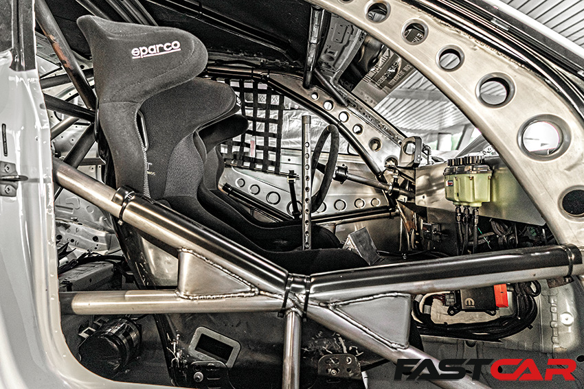 The interior is as focused as the rest of the car and has been outfitted with a host of top-end equipment. Both driver and passenger get to enjoy a pair of Sparco Circuit II QRT seats that have been equipped with matching Sparco six-point harnesses, and there’s a full custom roll-cage and custom dash from TC Design Fabrication, plus a custom switch panel. There’s a Sparco steering wheel, an AiM MXG digital dash logger, a Tilton pedal assembly, some beautiful lightweight door cards, a Lifeline fire suppression system, and in the boot, you’ll find an ATL fuel cell.
