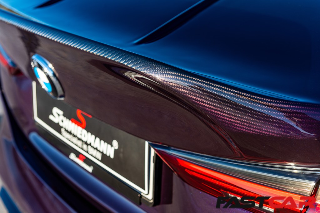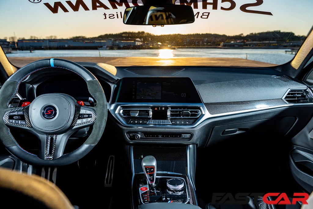 Finally, we come to the interior of the modified BMW M4 G82, and while Viktor hasn’t made many changes here, it still looks fantastic from the factory, and there are a few additional touches that just make a difference. “Since we ordered this car new, we, of course, added the carbon bucket seats from the factory. These are perfect for a street/track day car,” explains Viktor, and they are joined by the Carbon Package that slathers the interior in carbon trim. The steering wheel is an M Performance item, with its sexy Alcantara grips, and a Schmiedmann badge replaces the roundel, while the headrests also boast the Schmiedmann script and logo for the finishing touch.