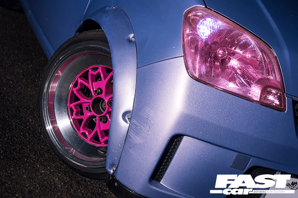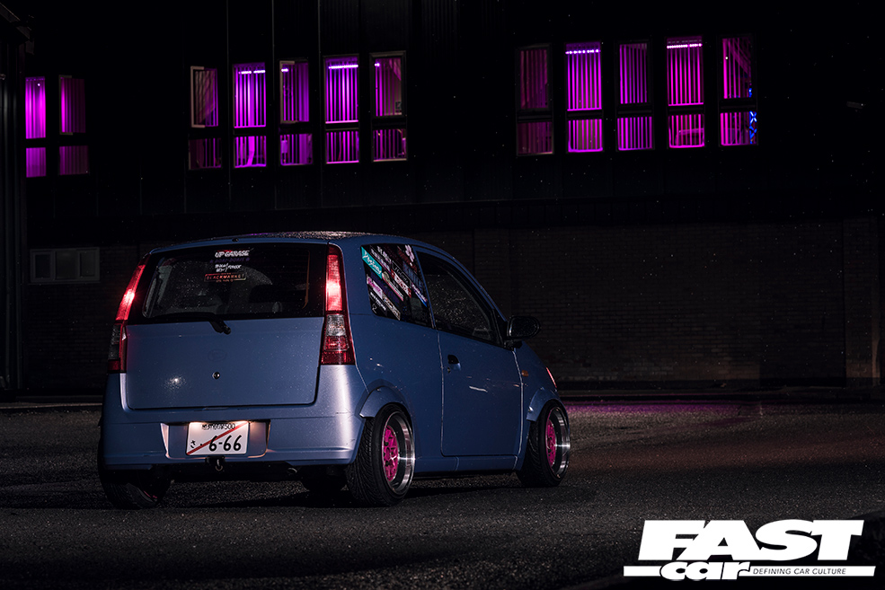One particularly effective example of this adage in action can be seen with young Olivia here and her first foray into the fantastic world of Japanese cars. With a tight budget and the expectation of racking up a lot of commuting miles, it would’ve been all too easy to blend in with the masses and settle for a beige Euro-box to carry out her driving duties. But playing on her creative strengths and using a little imagination has left her with one of the funkiest super-minis currently cruising British roads, and it was all performed for much less than you might think…