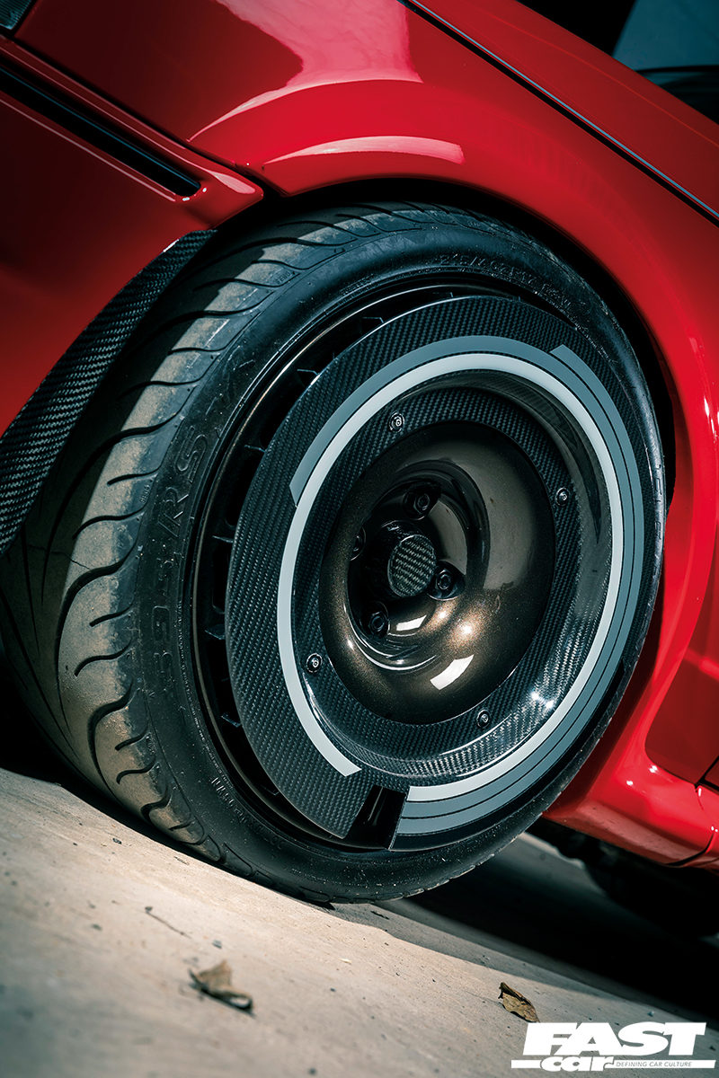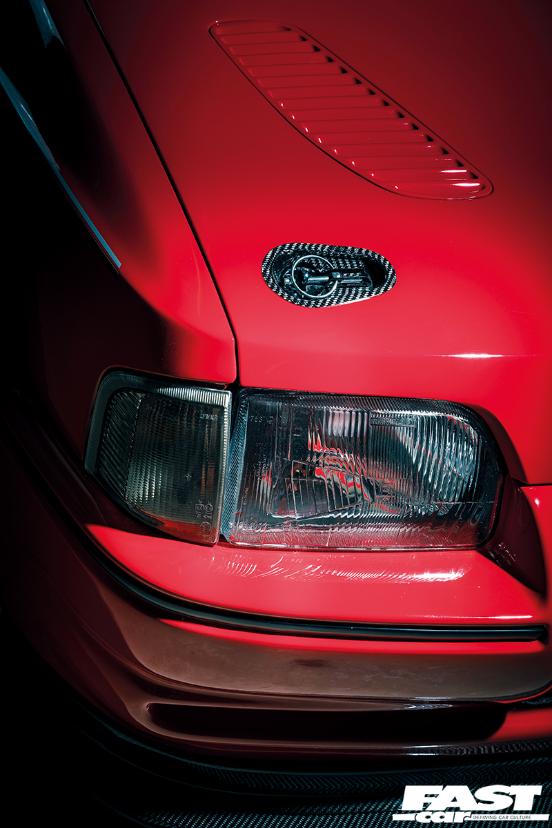 “The rear end was all done in about 2002,” he continues, “and a few years after that everything from the bulkhead forward was stripped and powder-coated to match the rear. The engine bay was also smoothed and redone; at this time I was doing all the paintwork on the car myself. The front end was done in about 2005, and shortly after that I met up with Phil Baldry at Carbon Delight… and that’s when the carbon fibre obsession started.”