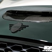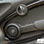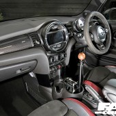 Carrera GT-inspired gearknob, genuine MINI carbon dash and door handles, Royal Black Alcantara steering wheel with carbon inserts