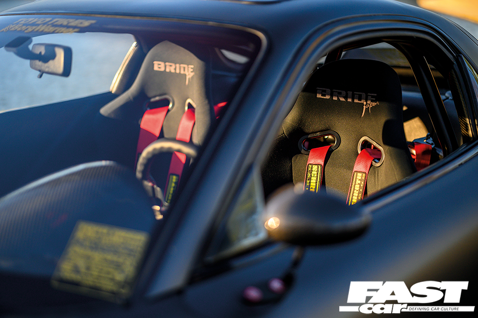 “The engine was built by me and Brian Treffeisen, a long-time friend and tuner,” says Phil. “Brian will be tuning the car, and we’re expecting to see around 450whp.” This is attributable in part to the fact that the revered 13B-REW has been converted to run a single turbo; a BorgWarner EFR8374, a ceramic ball-bearing unit designed specifically to support power in the 400-800bhp range while also offering rapid spooling at motorsport level.