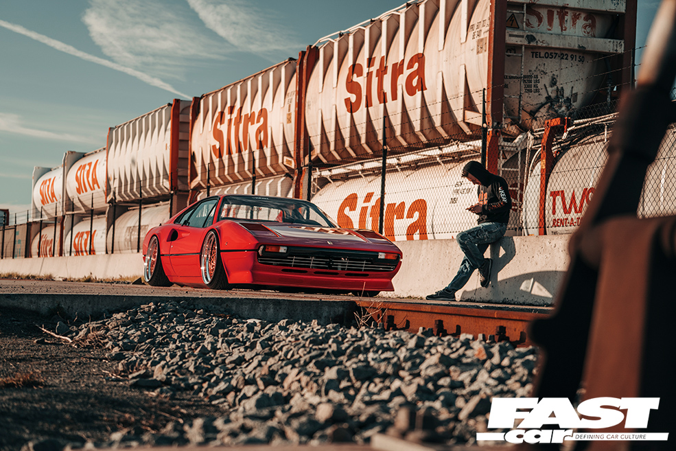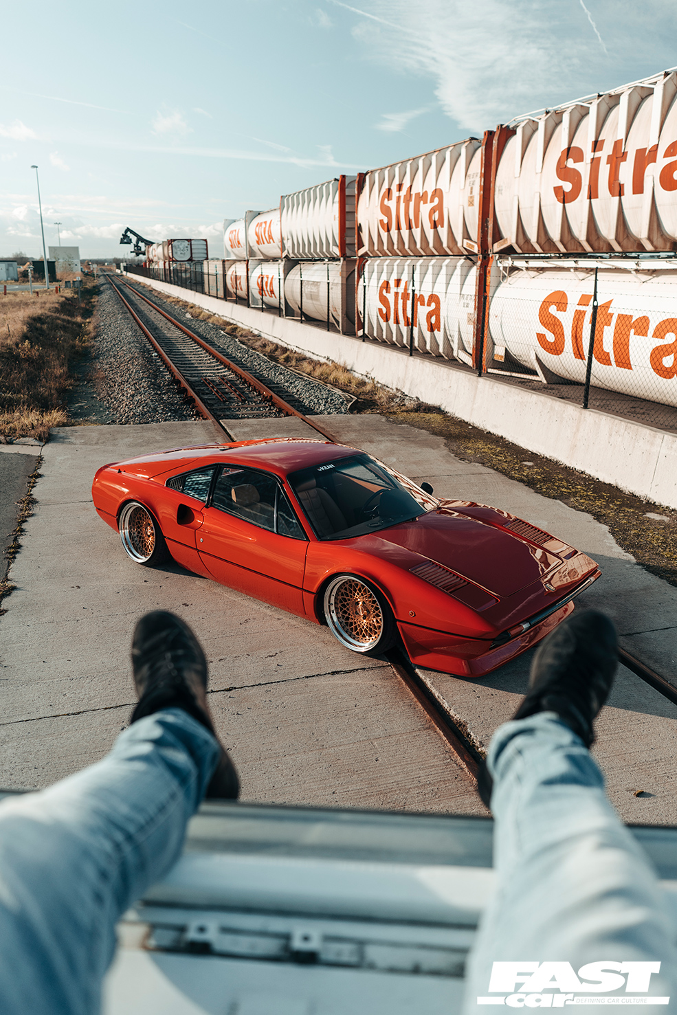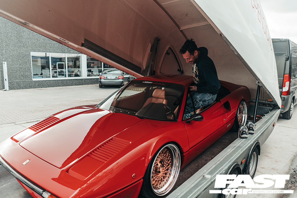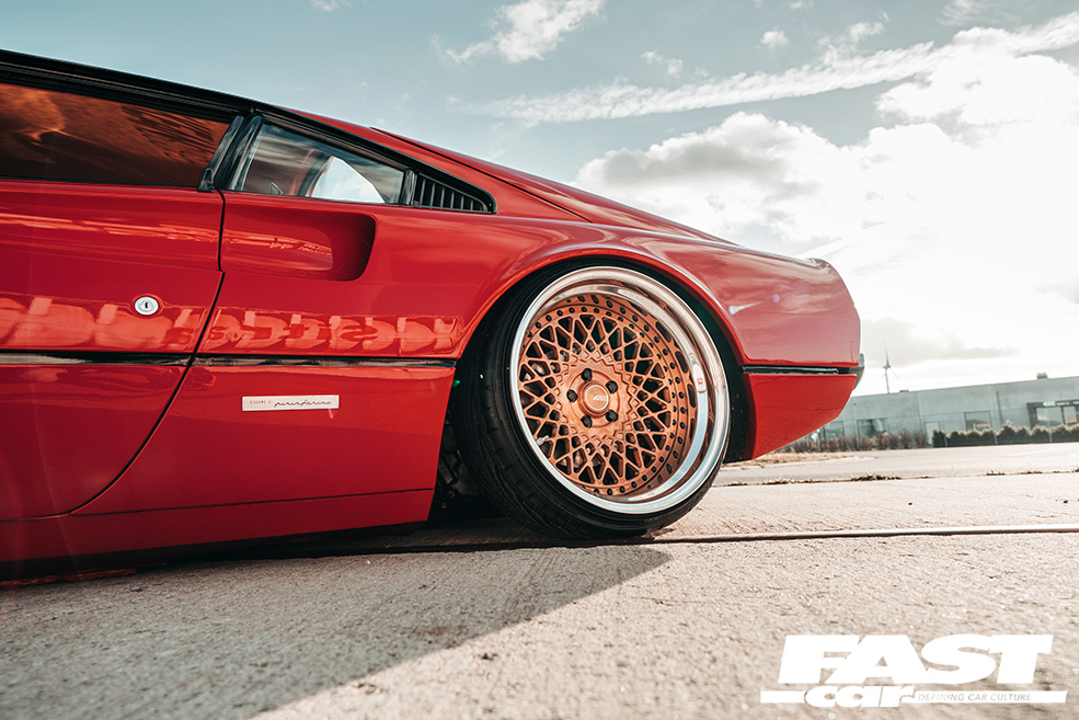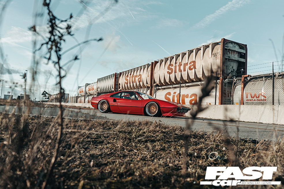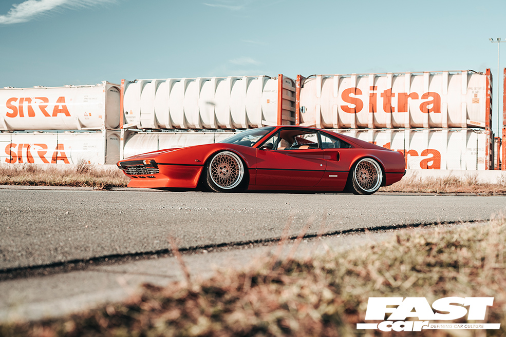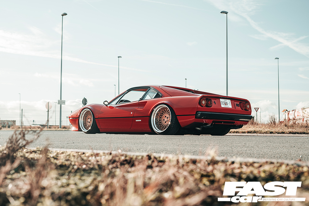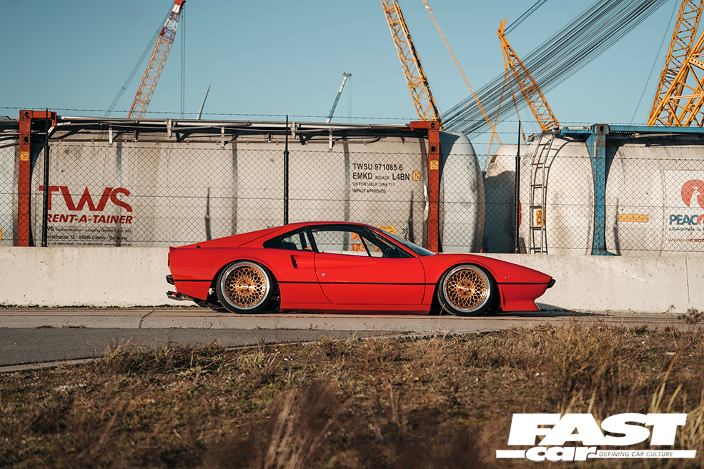 The first two letters of his name are the last two in KEAN – as in KEAN Suspensions, the Belgian custom-shop powerhouse who know more than pretty much anyone in Western Europe about getting cars sitting on the ground on custom air-ride and hydraulic setups. Along with his brother Kenny, their work can be enjoyed at shows all across the continent, and has appeared in these pages quite a few times too. So with the 308 beautifully restored and tastefully customised, it was time for Andy to do what he does best and lay the thing out on the tarmac…