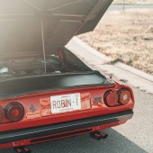 Full body restoration; shaved wipers, passenger mirror, roof spoiler and fog-lights; carbon fibre bumpers; carbon driver’s mirror, deleted passenger mirror; de-chromed badges; Rosso Corsa paint; arches modified for wheel clearance; highly polished and brushed front grille; Robin-1 Hawaii license plate (Magnum P.I. replica).