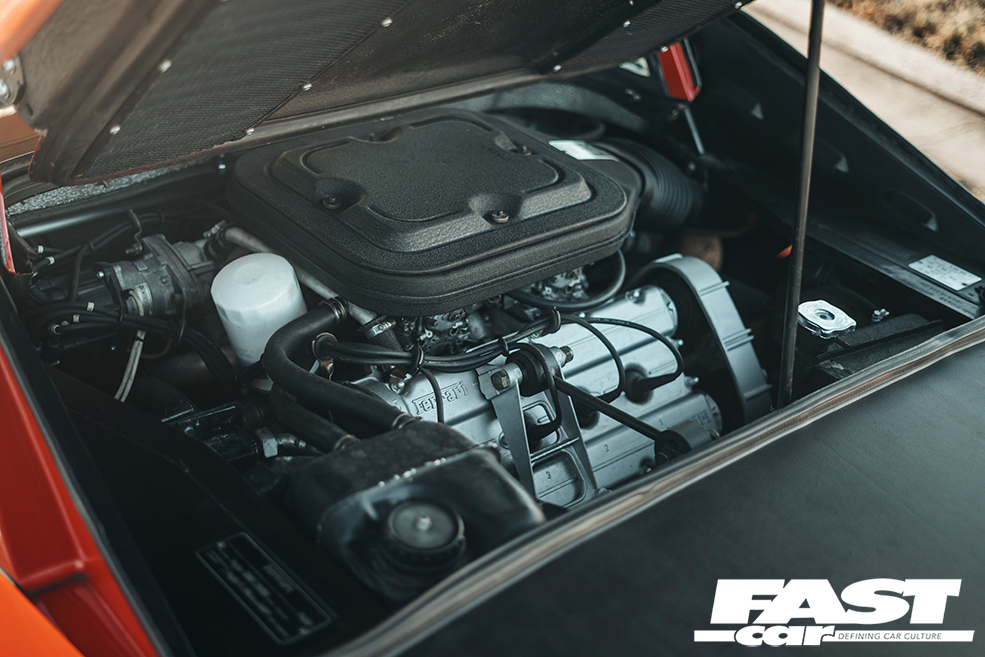 With a tube frame and separate body, it was actually a pretty simple thing, although it was complicated where it counted: the chassis boasted all-independent double-wishbone suspension and disc brakes all round, while the free-revving V8 was transversely mounted with a transaxle, all-synchro dogleg ’box and clutch-type LSD. The body was a gorgeous wedge, very appropriate for the mid-seventies; they were initially made of fibreglass (and early GRP cars can be worth seven figures), although construction swapped to steel from 1977.
