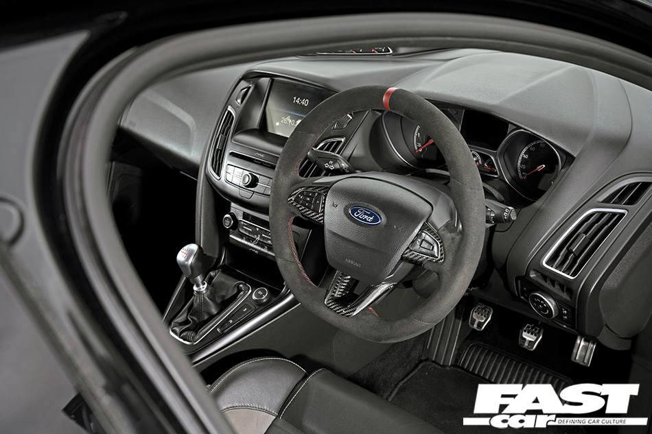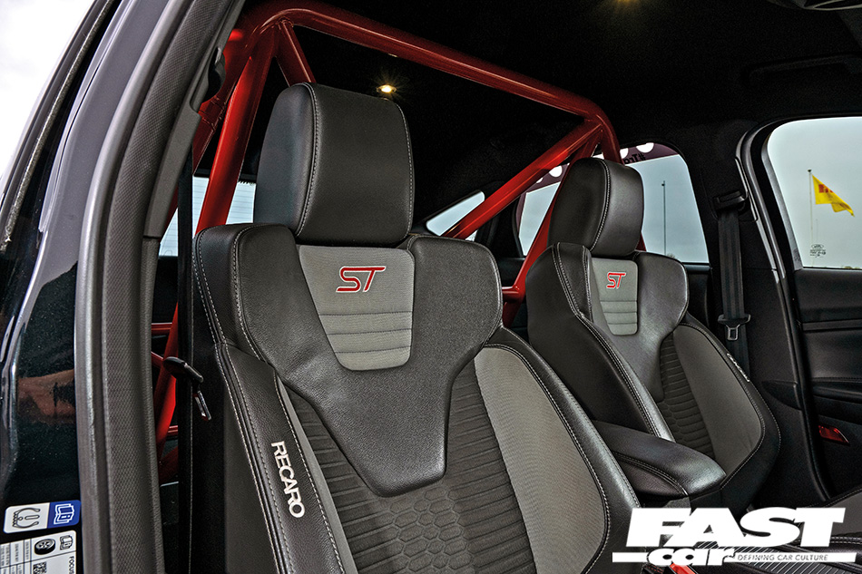Focus ST spec, Auto Specialists Clubsport roll cage, Alcantara steering wheel carbon inserts, Sync 2 sat nav upgrade, Powerbase speakers