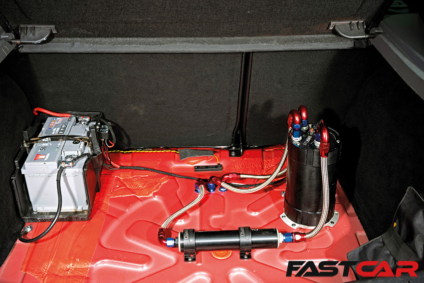 Also helping the front wheels gain some traction is the Syvecs S6 Plus ECU. As well as the obvious stand-alone mapping benefits, this system features anti-lag, launch control and torque biasing traction control. It’s used with a Syvecs Fuel Flex sensor that closely monitors fuel content and quality and relays the info to the management system. Again, this setup is as much about belt-and-braces safety as it is pure performance. Powerflex mounts were used for the upper engine, gearbox and exhaust.