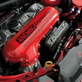 The welded top of the Spec-R oil filter housing eliminates the leakage problem that the plastic originals often suffer. An air-con delete was required to install a substantial Airtec Gobstopper intercooler. Elsewhere, the Airtec catalogue was hit up for a gearbox torque mount, header tank and power steering tank.