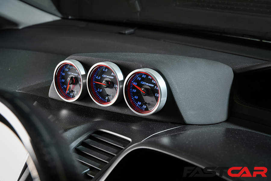 It’s not just the exterior that’s been modified, it’s fitted with a Toda exhaust and the ECU was sent to Japan for FEEL’s to map the car. Inside, there’s Mugen seats and Mugen assist meter gauges too. This project is especially unique as Tom says, “it’s one of one, it’s the only one outside of Japan with the entire FEEL’s kit on an FD2. Apart from the two they own, it’s the only one in the world, so it’s pretty special.”