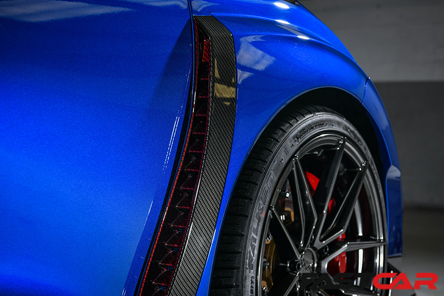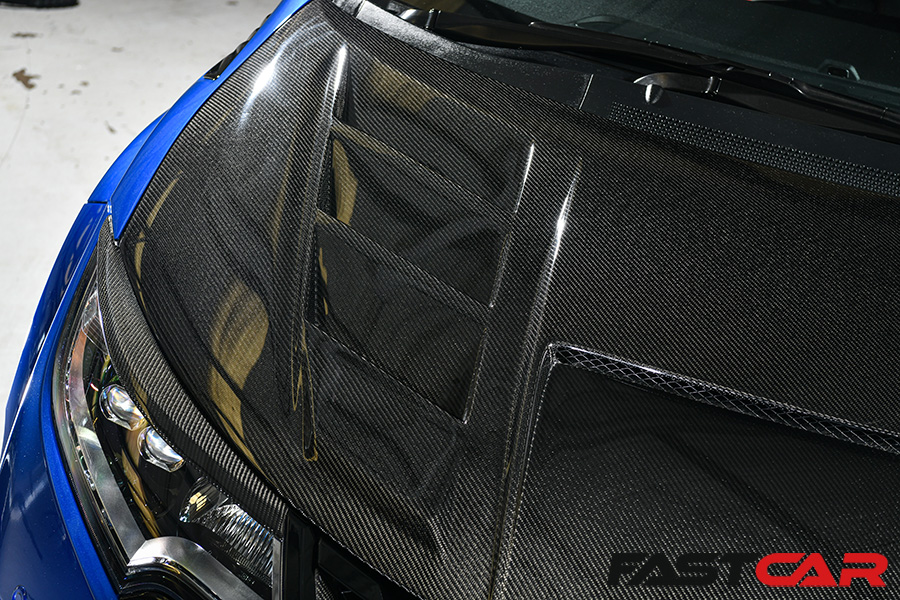 Where it always starts… “I promised I wasn’t going to do anything to it. And then it just snowballed.” It was small changes at first, but within a year, the modifications were well and truly underway. “The first thing I did was actually on the wing vents, I had some different wing vents made up in ghost carbon. So it was still blue but there was a white ghost carbon effect.”