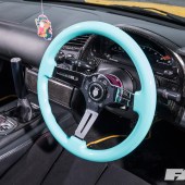 Interior edits have been finished off by a Grip Royal steering wheel repainted in the same custom Tiffany Blue paint, to match the rocker cover done by Endless Road. A new NRG boss was also fitted, along with a snap off. For added base, Lydia went for a Kenwood subwoofer, which is tucked away under the seat.