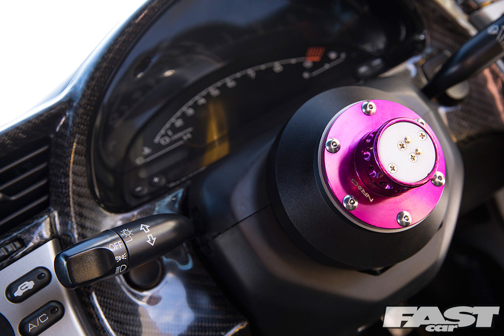 Carbon clock surround; stereo cover; gear surround; Zilla reclining seats; Grip Royal steering wheel; NRG boss and snap off; Zilla gearknob. ICE Under-seat Kenwood sub.