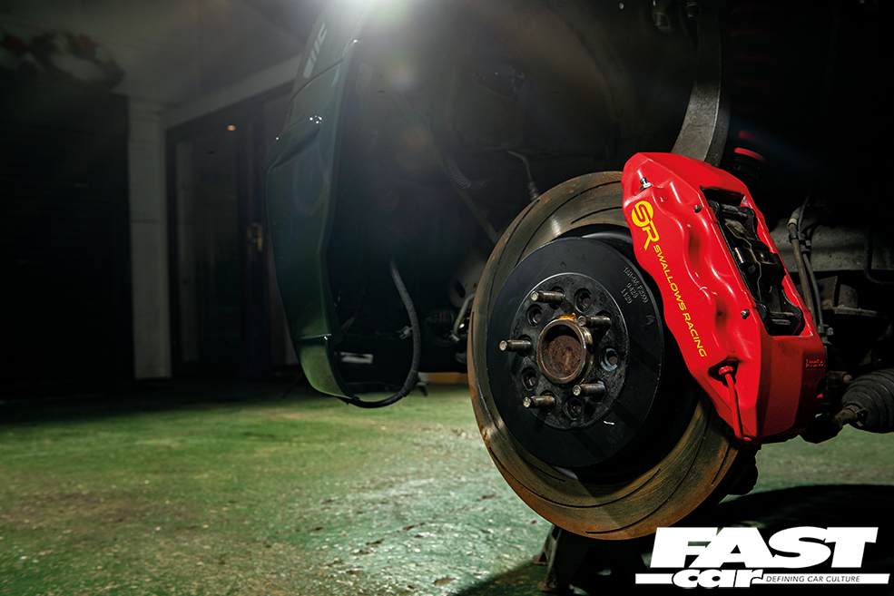 A custom set of two-way coilovers using uprated Eibach springs was created and means that the Jag can sit low enough to satisfy Dale’s tastes, yet also benefit from a wide range of damping adjustability to ensure it can tackle any track.