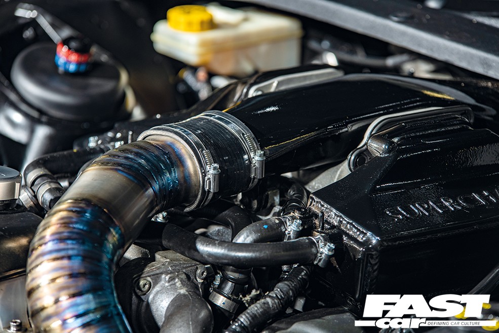 As well as the pulley upgrade, Swallows also added a custom hardpipe induction kit with Pipercross cone filter, a set of racing injectors, a custom stainless steel exhaust system and a fully integrated racing ECU, mapped by The Tuning Shed.
