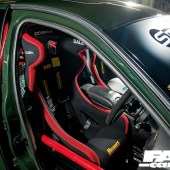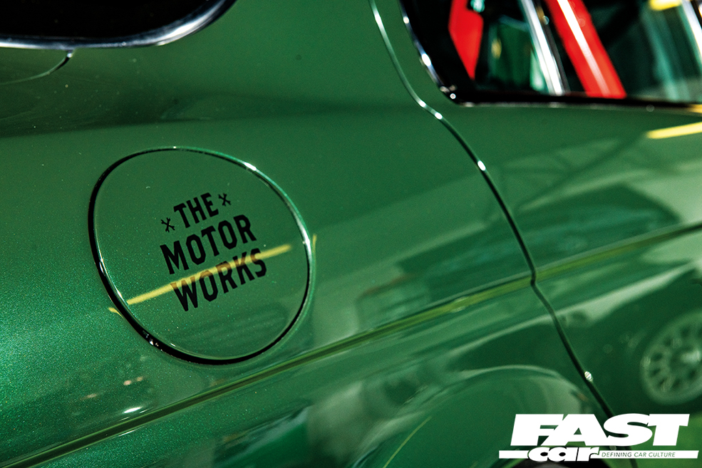 “We knew that the wider rims would never fit under the stock rear arches, so the car went off to bodywork specialists The Motor Works in Gloucester for a set of custom rear arches and a full respray in glorious British Racing Green with extra green pearl,” he remembers.