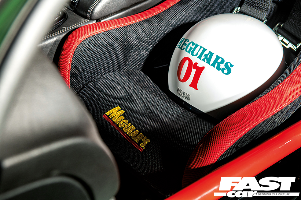 Based on Cobra’s FIA-approved Sebring fixed bucket design, Dale opted for black cloth with red accents and custom embroidery including his name on the driver’s seat and ‘Barry’ on the passenger seat, in honour of Meguiar’s president Barry Meguiar.