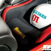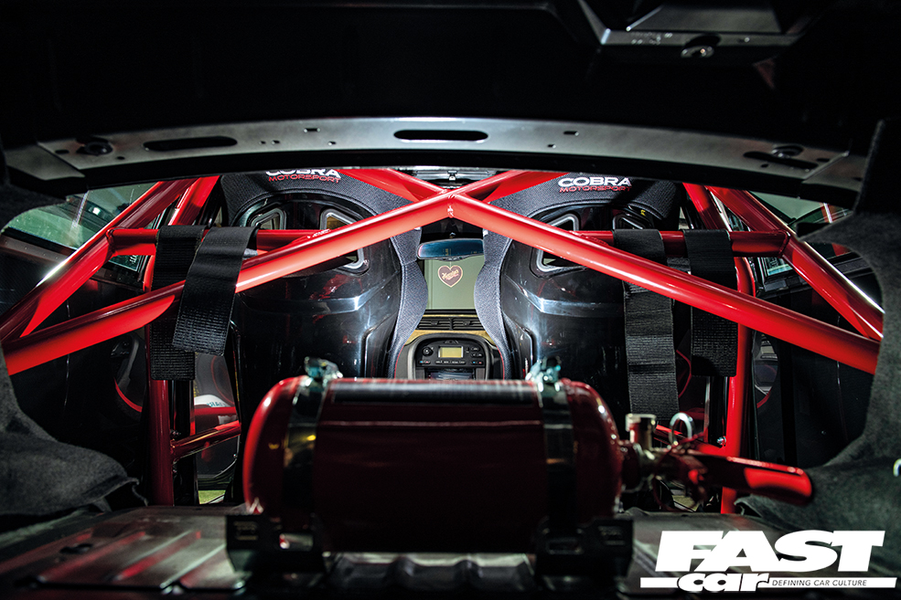 “With the Scroth harnesses the seats really hold you in place and, combined with the Motamec suede-rimmed steering wheel and the wild bolt-in custom rollcage made by Caged Laser Engineering, it really feels like you’re strapped into a thoroughbred racer,” reckons Dale.