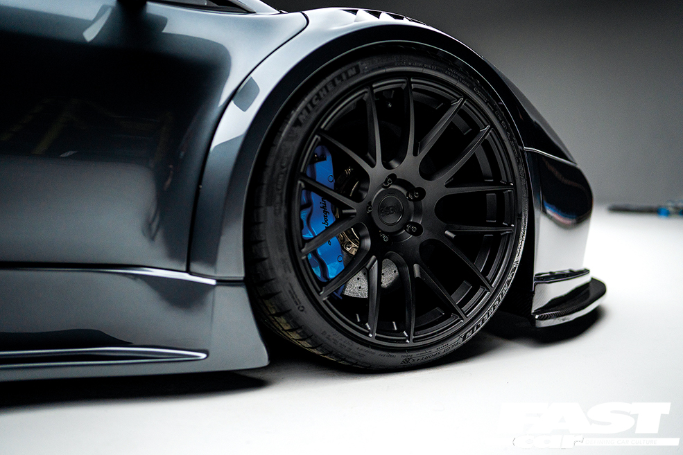 Custom forged monobloc 10.5x19in (front) and billet three-piece 13x20in (rear) 3SDM wheels, 275/30 R19 (f) and 345/20 R20 (r) Michelin tyres