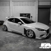 All ate up with arches, this BN generation Mazda3 is lost to an extreme and singular style that makes RAUH-Welt Begriff seem reserved and Liberty Walk look limp. Custom designed and fitted by Garage Unique, every slash of splitter and flash of high-gloss carbon fibre sear with fire brand flashes that are one of a kind. Even amongst the out-there cacophony of the Bangkok tuning scene, this newly completed ride knows how to get itself noticed.