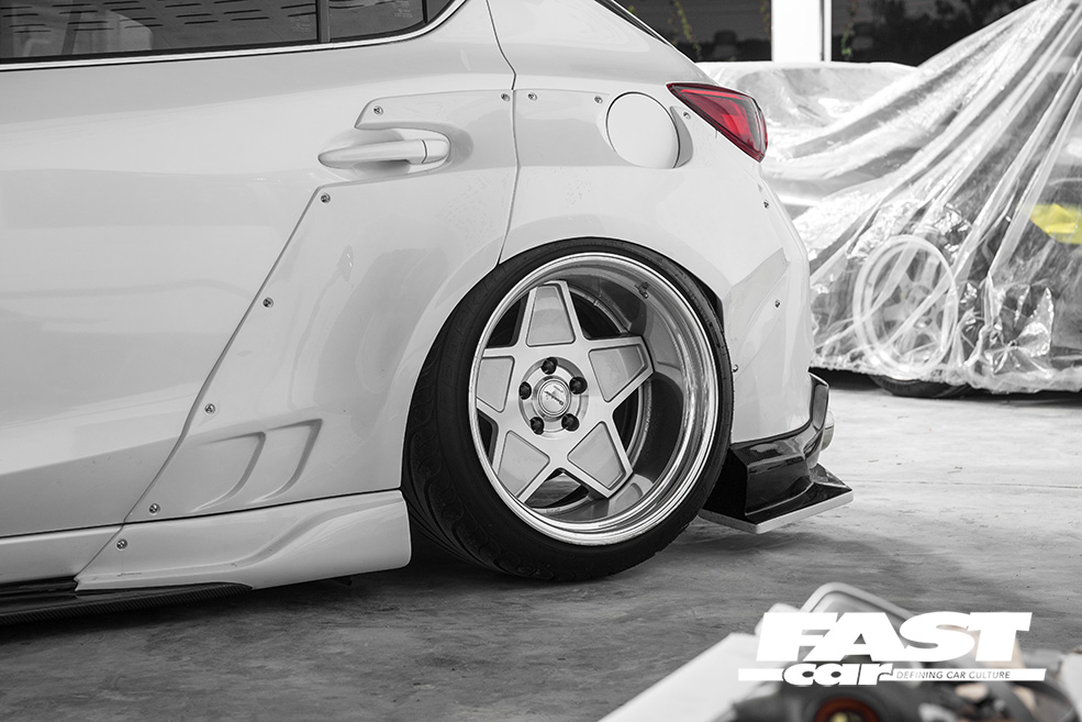 The idea resonated with Supachet. “My aim was to have a car that’s unique,” he smiles. “I wanted to have the very first widebody Mazda3 in Thailand.” The decision to ditch his current kit and involve Garage Unique was straightforward too. “I’ve seen loads of cars by Garage Unique here and they always look cool, so that’s why I chose them. Their style is just like their name – unique!”