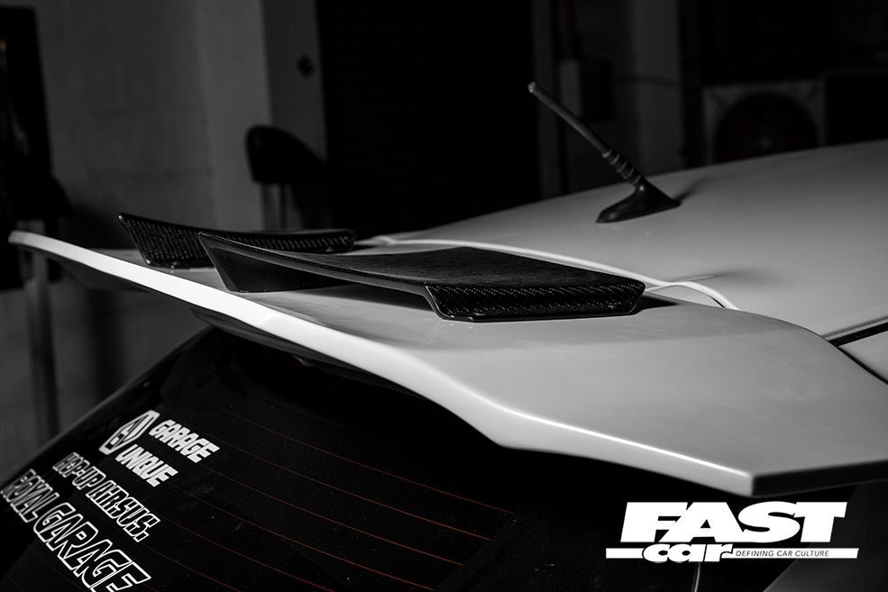 Tinted windows and a black spoiler extension got things off to a subtle start, followed by full-length sideskirts and a pronounced front splitter. Combined with a set of 15-spoke alloys, they endowed the mid-size machine with a nuanced OEM+ punch. Round the rear, Supachet skipped his low-key script and plumbed in an aftermarket exhaust with four swollen tips. Connected by a horizontal dash of body colour white, they offered the first hint that this hatch was going places and still sit on the car today.