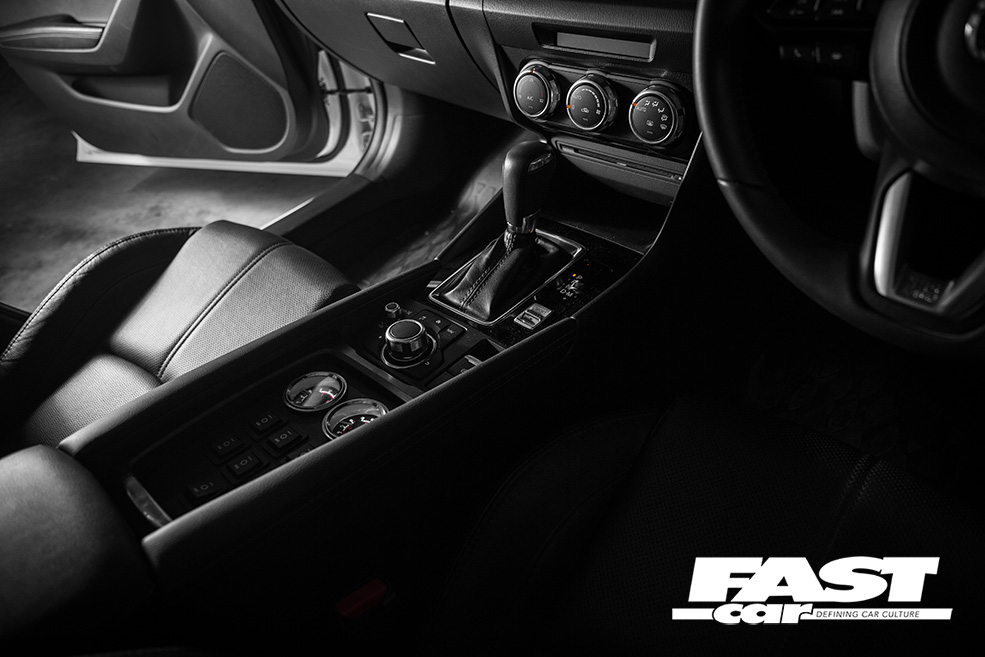 Peer under the bonnet and there’s scant excitement to be found. That’s a two-litre SkyActiv inline-four, swaddled in sound deadeners and producing barely 120 horses, plus the same six-speed slusher it wore on the Mazda factory floor. Huge quad exhausts add some bite at the rear bumper, but there’s nothing else to grab your attention. Not even a cheeky ECU remap. That’s no reason to throw rocks, mind. By maintaining the standard interior trim and running gear, Supachet has built a head-jerker that can mix it with the morning commute.