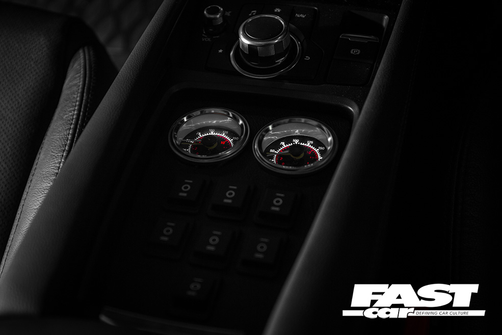 The interior hardly crackles with luxury, but nor is it race ready. It simply wears 20 shades of plastic almost-black, set off by the usual clutter of factory-fit amenities. Were it not for twin pressure gauges and a neat cluster of air ride control switches thrown far back on the transmission tunnel, you could be in any bundle-a-baht commuter.