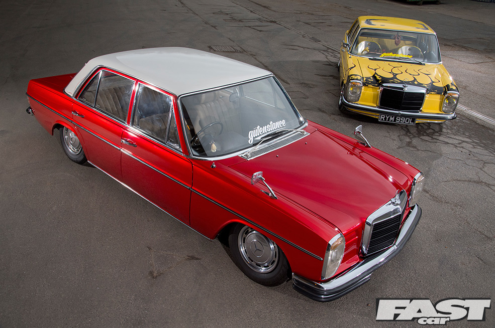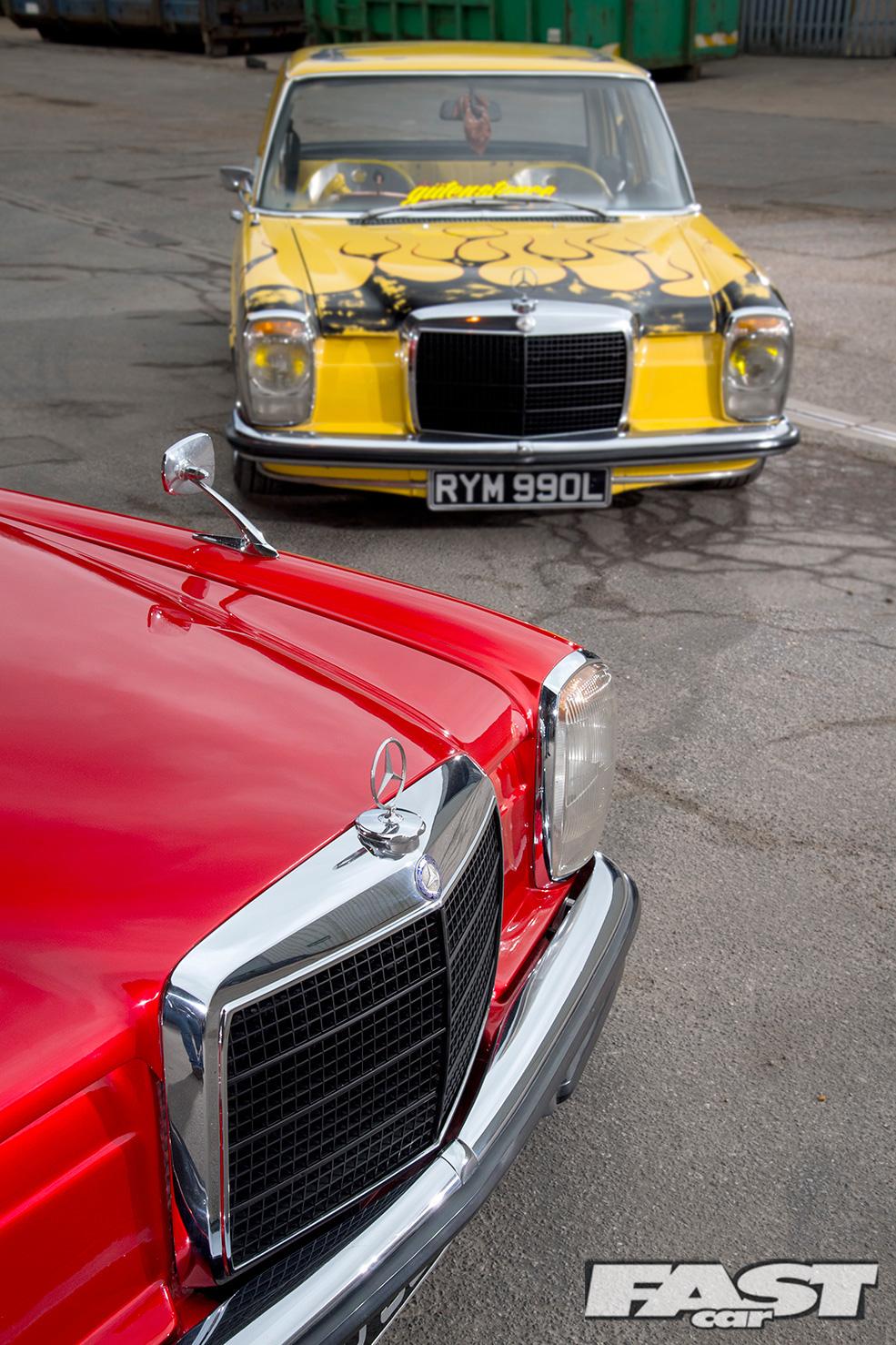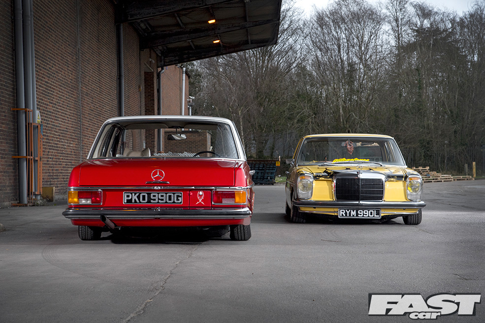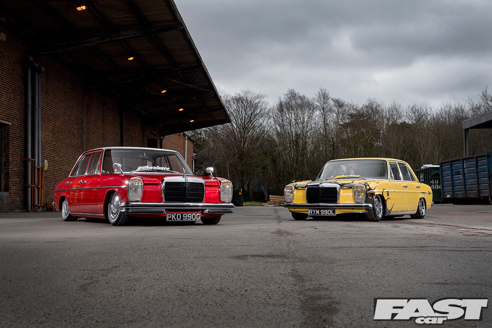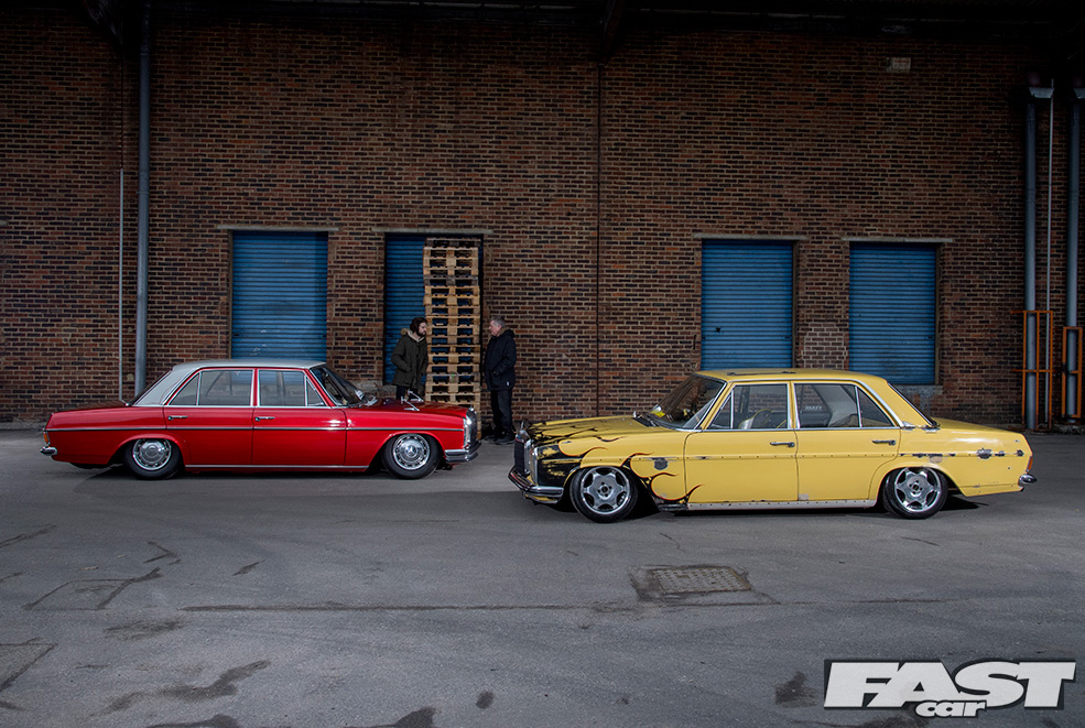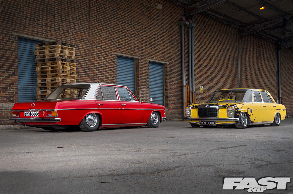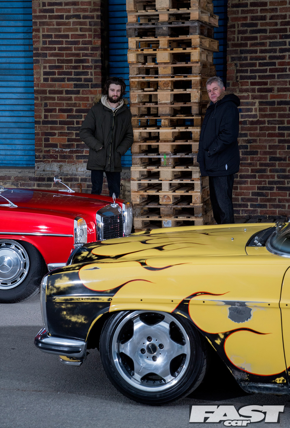 The father-and-son automotive bond is an age-old story, something we come across time and time again. It all starts with the guiding hand of a petrolhead father, be he a mechanic, a racer, a custom builder, or simply an enthusiast with a penchant for hot motors, and there are always guaranteed to be interesting cars about the place. When the Hot Wheels child becomes the Gran Turismo teen, they graduate to playing with real cars, and there’s no chance of anything staying stock for long. But how often do we find this shared pan-generational interest manifesting itself as two matching cars? That’s far rarer. However, as Paul and James Aveil neatly prove here with their pair of W114-generation Mercs, if you do it right then it’s just about the most awesome thing ever.
