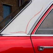 Renault Flame Red, off-white roof, Mercedes flagpoles, pinstriping.