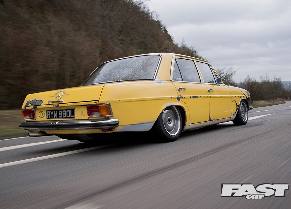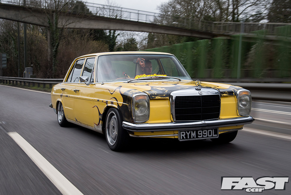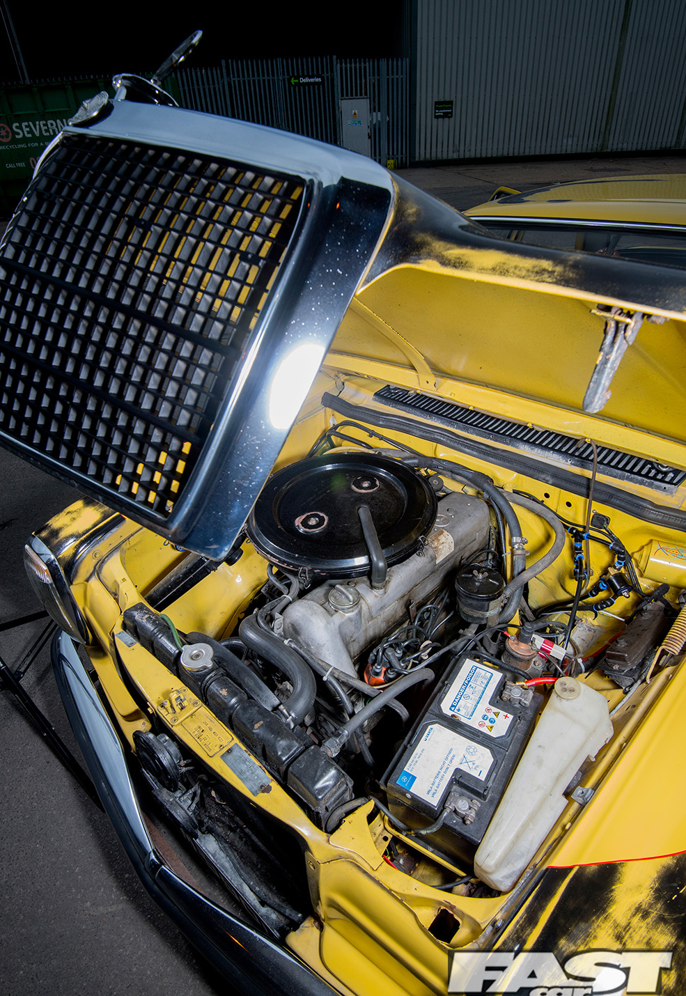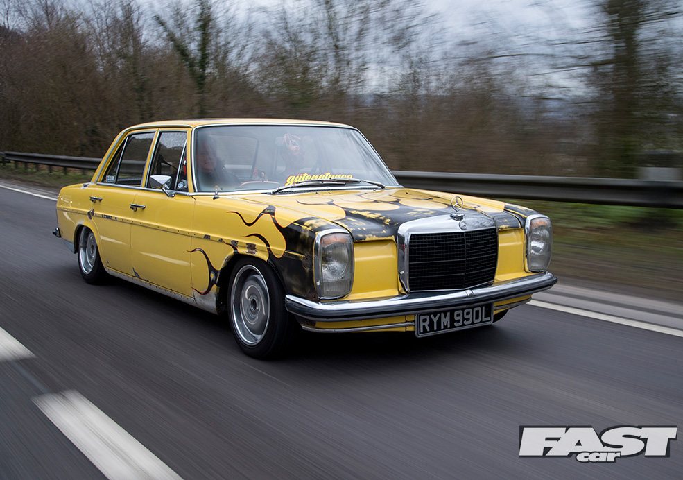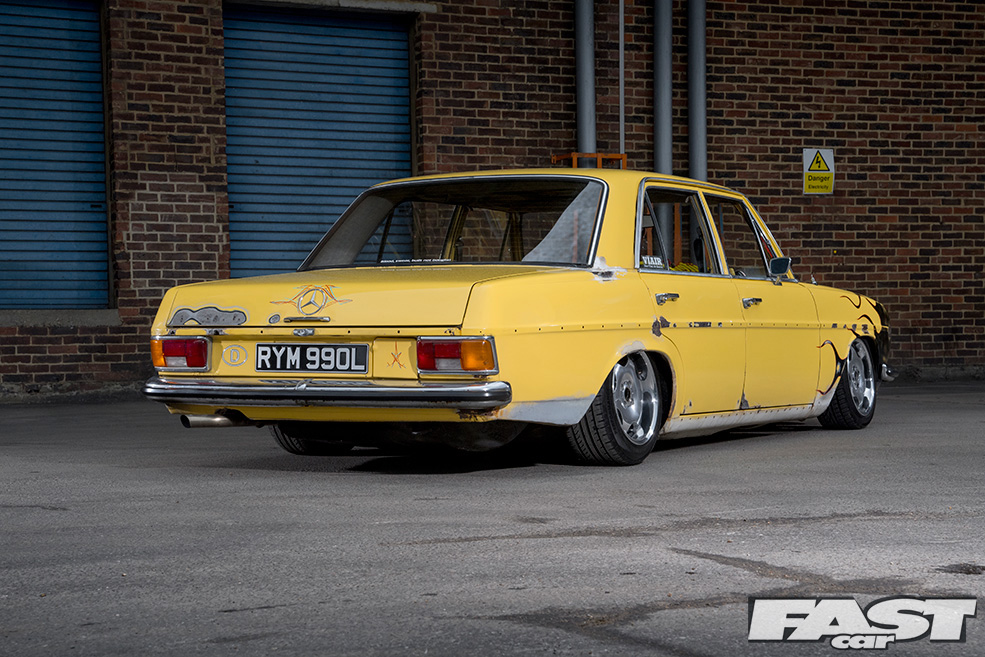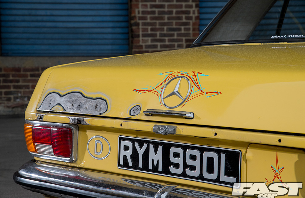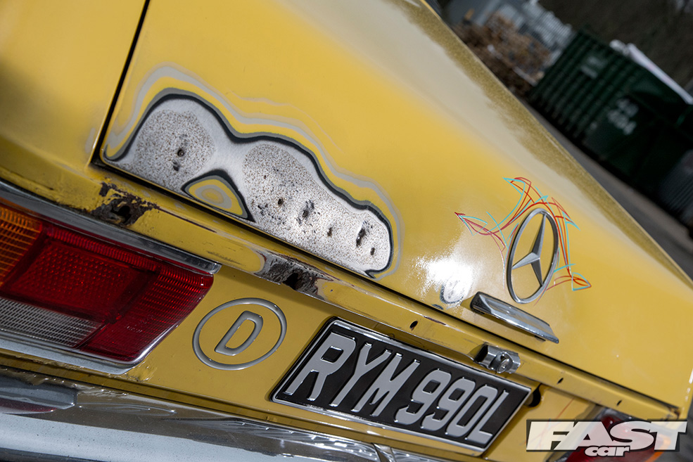 It wasn’t just the wider car community that was inspired by the finished build either. Paul found himself enraptured by the red bruiser’s charms, so much so that he had to get a piece of the action for himself. Before he knew it, he was browsing the Car and Classic classifieds as history repeated itself, finding a yellow 1973 W114 280 in Edenbridge; the body was tatty, but it was a runner and he was actually able to take it for a test drive. “The bloke selling it had already told me that the bulkhead was extensively rusted around the transmission tunnel,”