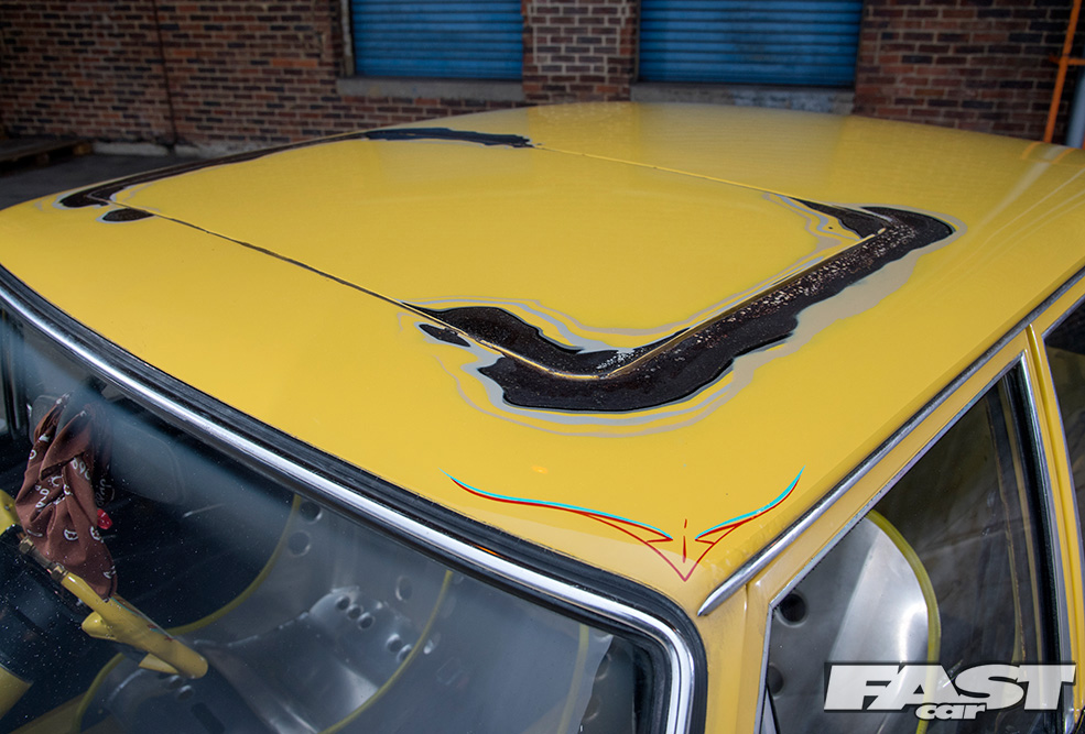 Paul recalls. “In fact, it was so bad I could take the oil filter off the engine without getting out of the car! Anyway, I drove it around his unit, and £800 later I drove it home. The plan was simply to sort the rust and bag it, simple as.” Yeah, it sounds simple on paper, but the thing about old-skool rodders is that they tend to get carried away. Paul removed the dash in order to get to the rusty bulkhead, and this necessitated removing the steering column too; to get to the nut on the steering wheel he removed the rubber cover on the horn push, and revealed copper underneath. This may seem like an insignificant detail, but it catapulted Paul’s imagination right back to the eighties: “The sight of that copper sent my brain into overdrive,” he grins. “The dash was cracked, the centre console was worn out, the wooden veneer in the dash was bad, so what the hell! I decided this was going to be different.”