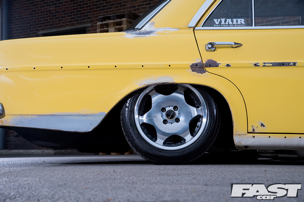Let’s turn to James, then, and get his perspective on where this whole story originated for him. You’ll be unsurprised to note that the ingrained car enthusiasm in the family DNA started him off down the right path. “My first car was a Mk2 Caddy van, which eventually ended up lowered on a set of Revolutions, and had many different looks over the years,” he says. “It was a couple of years after first buying that when I bought the Mercedes – still keeping the van as my daily. I also owned a high-mileage mapped B5 S4 for a while, but sold that on before the expensive bills started coming in! I originally wanted a classic Merc after stumbling across the Governors Club Instagram page, run by John Ludwick Jr. who, at the time, owned an awesome bagged W111 Fintail. That got me hooked instantly.”