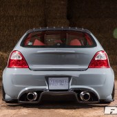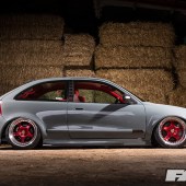 “After several trips to the scrap yard I decided to use Mk4 Golf front wings to make my car wider, and I got busy welding them on. I also rounded off the inner arches to allow full drop and still roll on 10-inchwide wheels, which was a great achievement! These new arches caused a knock-on effect, meaning changing the bumpers and re-thinking the side skirts as I needed to make everything 3-4 inches wider. I built my own parts such as the rear diffuser, made from scratch and based on the Jaguar F-type design. The rear bumper was built around the diffuser and then widened to meet the arches. The front bumper was modified significantly, adding DRLs and Audi R8-inspired grilles and lots of smoothing and re-shaping. I made a splitter from carbon-fibre, and followed on this look with custom sideskirt aprons and the rear vortex spoiler.”