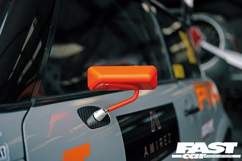 Braking is taken care of by HiSpec calipers at the front, the same as those on Mini Challenge cars, while the wheels on the Mini in the photos are forged aluminium Stuttgarts, so they’re very light and strong. Nigel also has sets of Rotas, Speedlines and Team Dynamics, which he uses for testing or as wets.