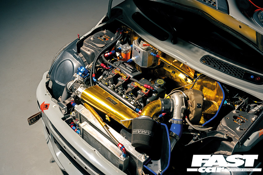 Further turbo work saw Nigel upgrade that GT28 to a GT32, but there were more problems as that wasn’t really spooling up until 5000rpm. “It didn’t have the oomph to make it spool, then it would just come in with a massive clout, and that was pointless.” So, as the G25-550 turbo had just come out, Nigel got one and bolted it on. “It was so much better, it’s got good power delivery on it,” he smiles.