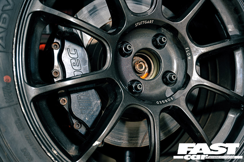 HiSpec six-piston callipers with 310mm discs, bespoke pedal box, Alcon cylinders