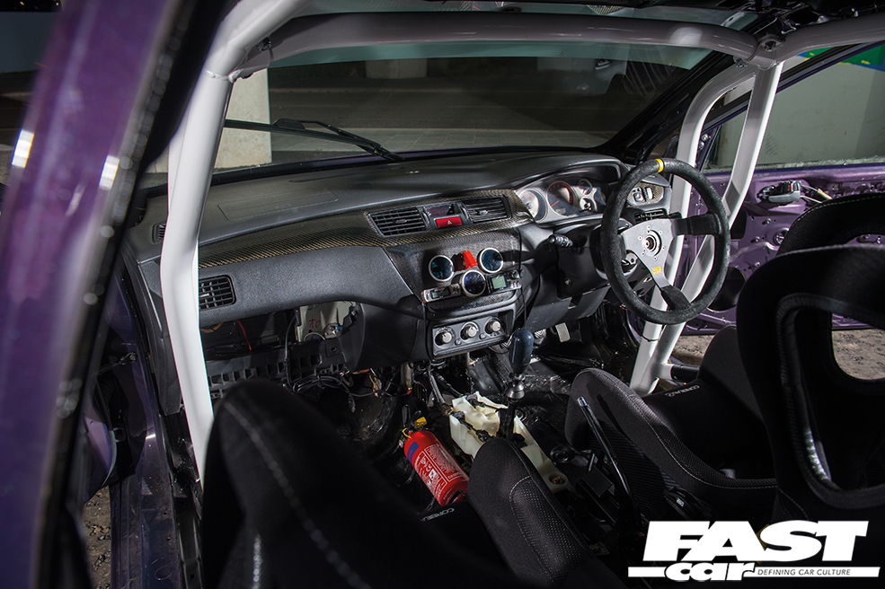 All of this represents a marked shift from his former automotive endeavours. “Before the Evo 8, my main modified car was my first Volkswagen Golf TDI,” Lawrence explains. “It had everything possible done to it to turn it into a show car. Ever since that I’ve had an addiction to modifying, to make cars unique and my own; having done the slow show car thing, I fell in love with Evos and subsequently this happened – which could be seen as both, I guess.”