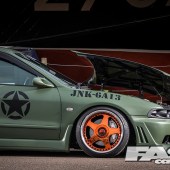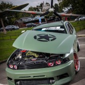wing mirrors; Lexus IS250 rear lip moulded to fit; door-controlled puddle lights in skirts; dipped in Nato Green with army and Fitment Junkies decals.