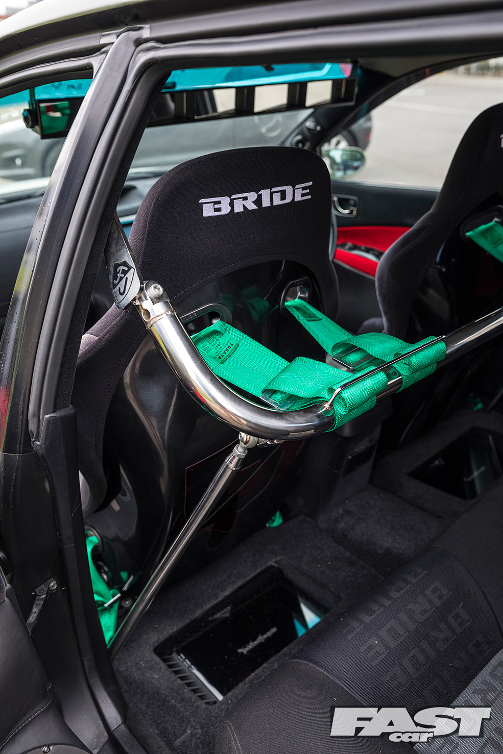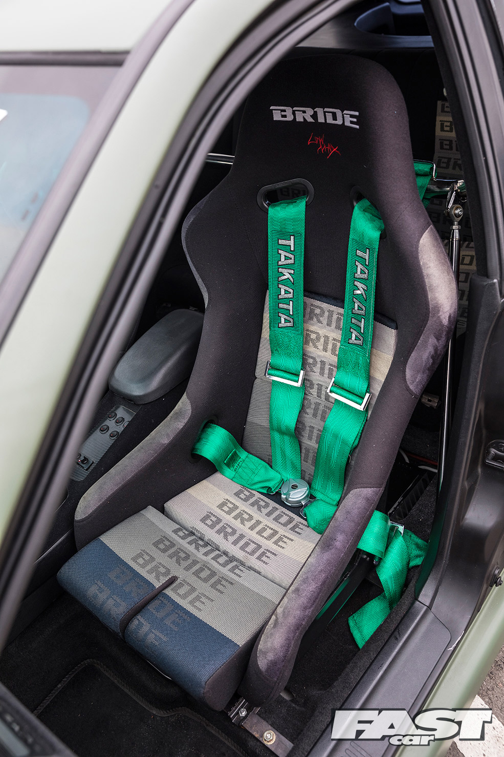 Right then, back to the build. “After fitting Rotas and coilovers, it all really began,” Darren recalls. “There was a bit of colour coding, and I found an Energy polybush kit comprising 48 bushes which made body roll obsolete. At the same time I fitted the Evo brakes all round.” While searching Driftworks he unearthed a second-hand set of staggered SSR Koenigs on a high offset. “Useless for S-bodies and perfect for me!”