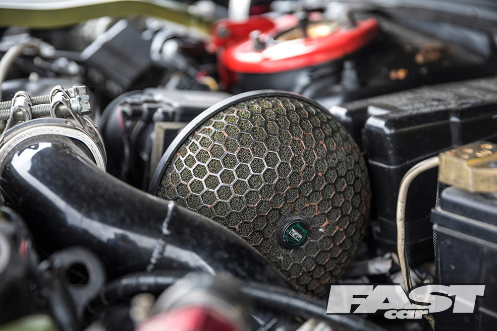 Blitz pod filter; full 3in straight-through exhaust system with 2.5in downpipes; HKS SSQV blow-off valve; Walbro fuel pump; front-mount intercooler; full engine polybush.