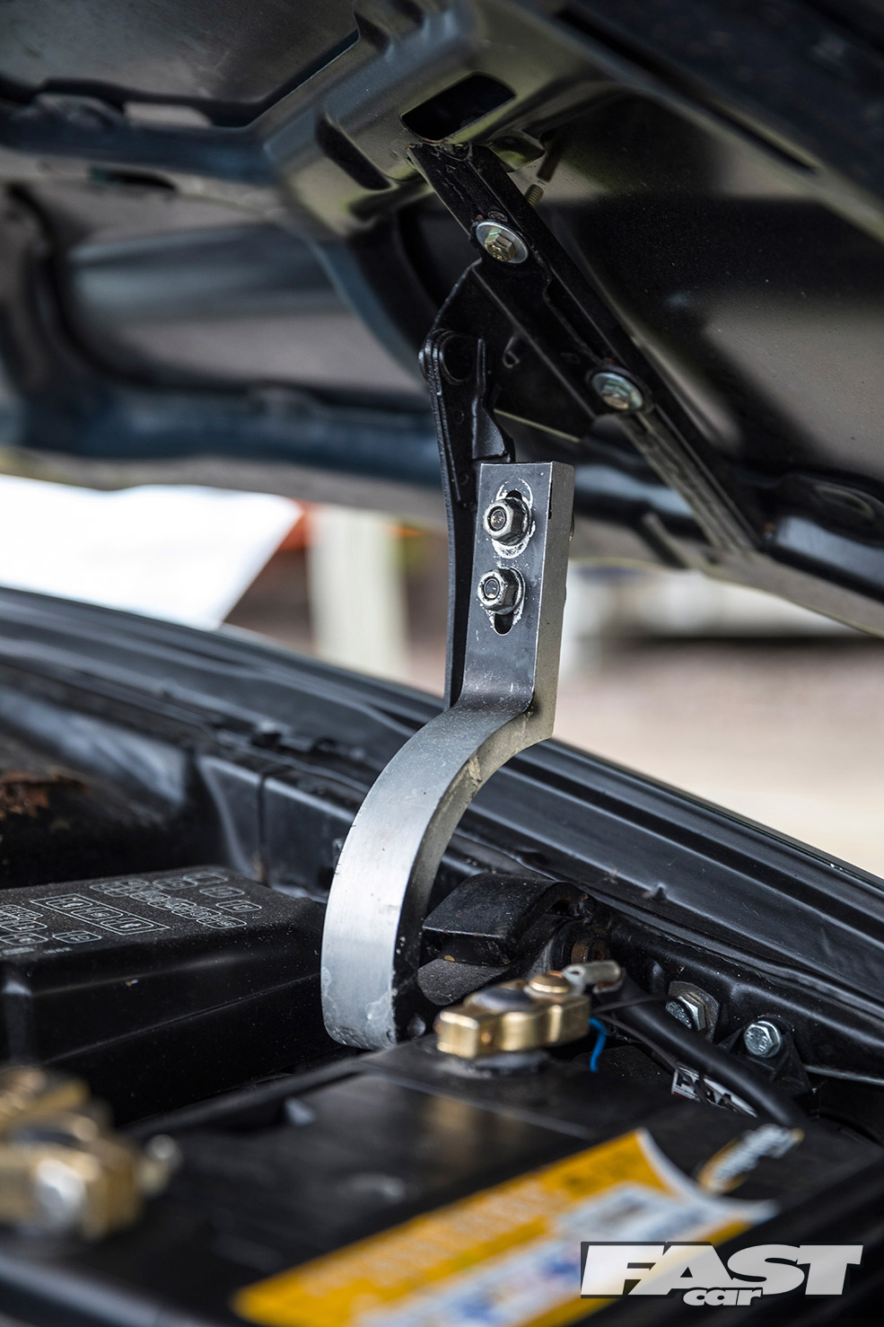 “I began hunting for camber mods and found nothing,” says Darren. “So I decided to go it alone and started altering suspension parts myself: bolt-holes moved, and adapting parts from other cars until I got the maximum I could out of it. Then I decided the car needed to stand out. I sourced some hot-rod bonnet hinges in the US and had them welded into my chassis leg. The bonnet now flips open sideways!”