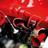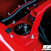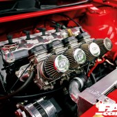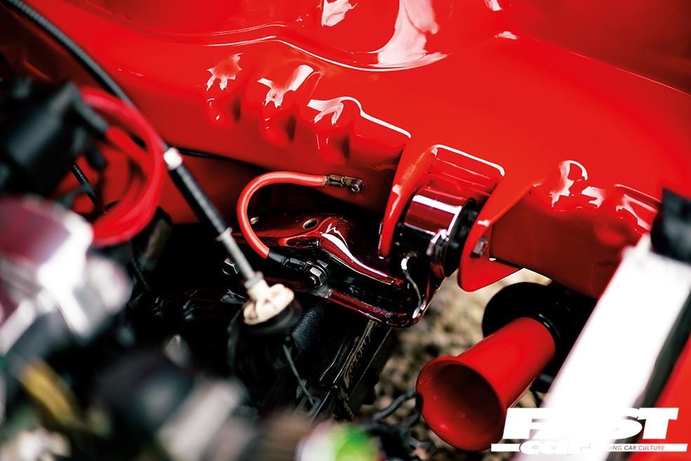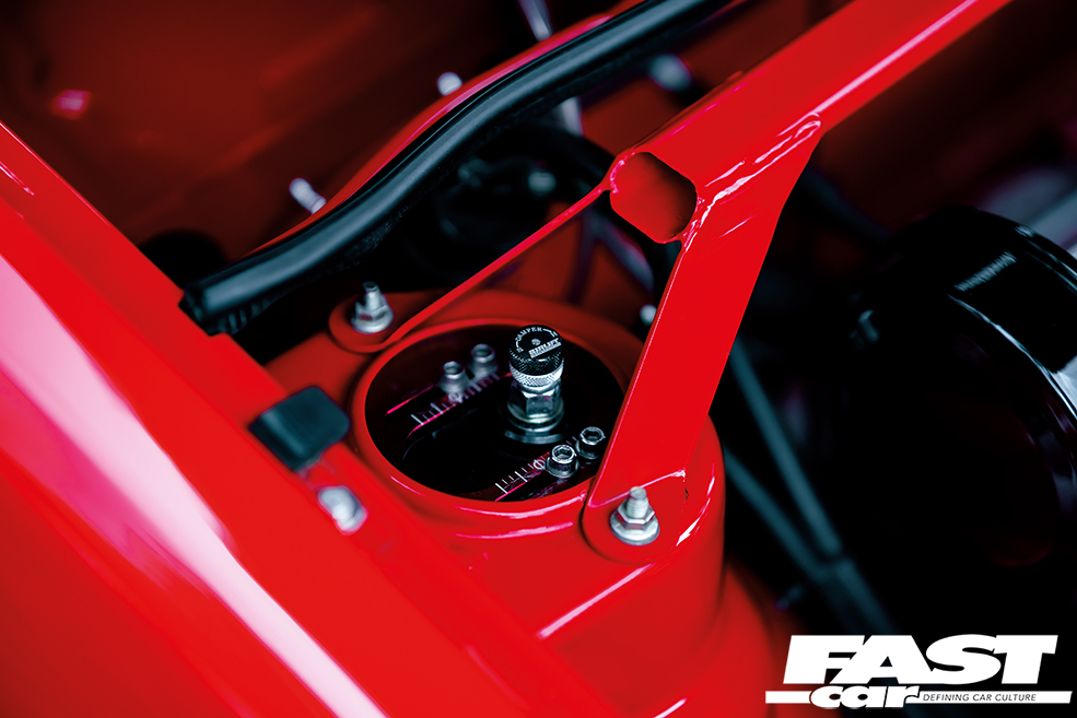 CE Automotive worked their magic on the mechanicals and Yamaha R1 bike carbs with K&N filters on a Borg Brothers custom manifold prove that the car is about go as well as show. This set-up is accentuated with the minimal ‘bay that utilises a wire tuck and relocation of battery and washer bottle to the boot. The ignition coil and brake reservoir are also hidden. A neat body-coloured strut brace provides some extra rigidity to the chassis whilst a custom 2″ stainless steel exhaust system adds to the bark of those bike carbs. A custom radiator keeps things cool and trusty O20 transmission swaps the cogs. CE was also responsible for the neat air ride installation.