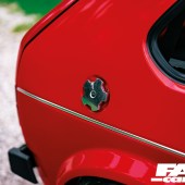 Although the aforementioned ABF was already fitted, by Scott’s admission it wasn’t the prettiest conversion. Tim at Trick Licks Bodyshop agreed to smooth and paint the bay on the proviso that Scott removed the engine and refitted it. Scott explained: “I’d never removed an engine before but Tim was always there to help me. Whilst the motor was removed, I used the opportunity to have the gearbox fully rebuilt and ordered many new parts for the engine. I got everything either chromed or painted before putting the engine back in. I spent many hours after work getting in Tim’s way coming up with ideas”. This Mk1 follows a less is more, well-proven styling formula but the hidden attention to detail is superb. Custom paint adorns the car and the finish under the smoothed and rolled arches is better than that on the top of most cars. The big bumper delete has been done properly and gets rid of the bracketry apertures. Small stainless bumpers complement the chrome trim that includes the grille surround, filler cap, tailgate, side and screen trims and window wipers. The deletion of the rear wiper, aerial and rear towing eye are all touches that add to the minimalist Euro flavour. All red rear lights, clear front indicators and colour-coded wing mirrors represent a few cleverly chosen contemporary touches on an otherwise classic-looking theme, all of which suit the custom hue of the car. “With the number of man-hours this car needed in bodywork in the end, I would have been better off starting with a nicer shell as Tim reminds me of daily”.