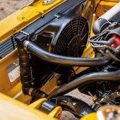 1.4-litre, four-cylinder, 16v (AFH), rebuilt and gas-flowed cylinder head, fully rebuilt block, Kiehin 600cc motorcycle carburetors, custom billet aluminium inlet manifold, Reverie carbon-fibre airbox, Ramair performance cone filter, Facet Posiflo fuel pump, Sytec fuel pressure regulator, Mk2 Golf distributor and ignition module, Omex Clubman rev limiter, 4-2-1 exhaust manifold with Titanium heat wrap, new flexi-joint, Jetex 50mm stainless steel exhaust system, gold plated pulleys and engine bolts, Porsche oil filler cap, S1 top-fill radiator, slimline fan mounted in modified radiator cowling, tucked wiring loom, Anti-Gravity lightweight battery. FWD, 5-speed Polo 085 manual gearbox