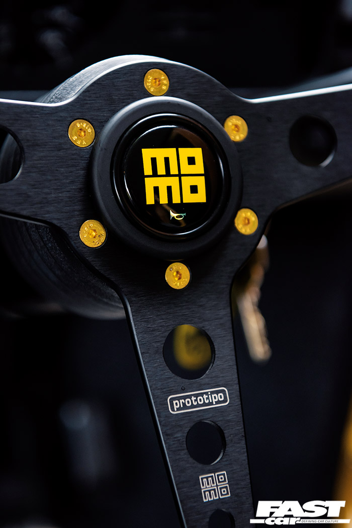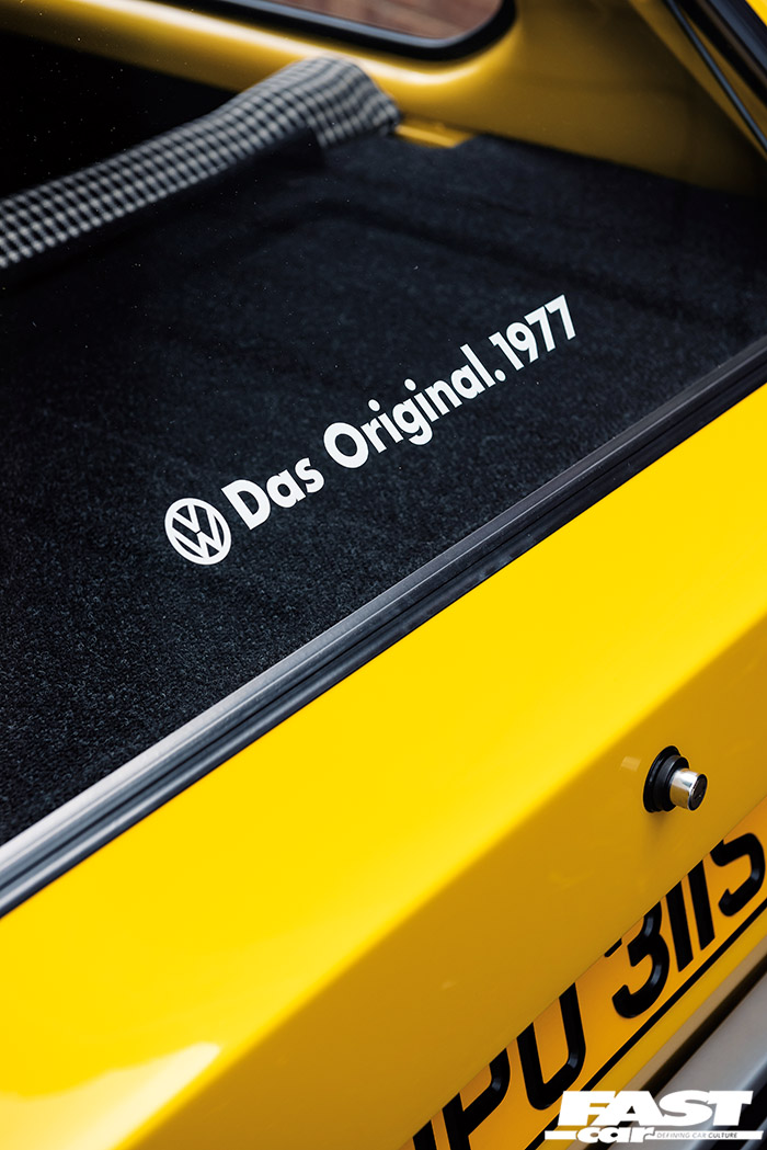 Like the minimalist exterior, which remains largely as VW intended with the exception of a pair of German postie-style rear lights, the interior is similarly sparse, with only a 350mm Momo Heritage Prototipo steering wheel with gold plated bolts and a series 1 GTI centre console with TIM Superdash LED electronic tachometer and water temperature gauges adding just a hint of sporty style.