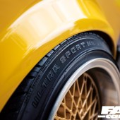 “It was already sitting on a set of H&R Ultra Low coilovers, but didn’t drive or ride very well, as running the car that low was compromising the suspension travel and geometry settings,” Mick explains. “To remedy the situation I modified the strut tops by raising them two-inches with Porsche 924 top mounts,” he said.