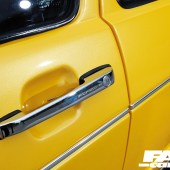 As a LHD car it already came without the ugly brake balance bar assembly in the engine bay, but that didn’t stop the chaps from opting for a Mk2 G60 LHD pedal box to bring the hydraulic clutch into play. It rolled around like this for a few years until the desire to smooth out that engine bay started raging. “We went to see Sanj at Vara Technik to start the engine bay tidy up.” Having dropped the engine and ‘box out at home the car was soon deposited at Sanj’s bodyshop, while the lads called upon the 20vt know how of the Style Dynamix crew to suss out which parts of the EVAP, PCV and recirc system they could re-route or scrap to delete as much plumbing and complication as possible. Meanwhile a repair section of chassis leg was sourced and the heater box, scuttle tray and so many other holes, bolts, lumps, and bumps were painstakingly welded, filled, and concealed – it truly is a testament to patience and planning this engine bay. It’s so clean shaven it looks like Sweeney Todd himself has been in there, “Only problem was,” says Ameet, “Once the bay was painted in Lamborghini Giallo Midas Pearl it looked so good we couldn’t leave the rest of the car looking half baked.” Not least because the Ghetto Motorsport extended, and hidden wiring loom was joined by an AGN smooth valve cover and 2.0TFSi red coilpacks to support the jewellery like status of the one-off polished ally boost pipes. “The lads from SD were invaluable with their 20vT know how though, we’re lucky we got to do it once and do it right thanks to them” confirms Puneet.