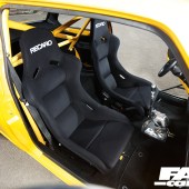 Recaro Pole Position seats on custom GDF sidemounts, GDF Steelworks custom half roll cage, fully retrimmed in black carpet throughout, custom headlining, Momo 300mm Team steering wheel