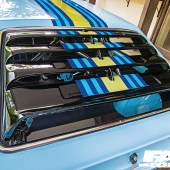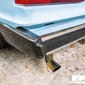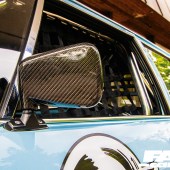 Full body resto, Baby Blue paint, Aenso graphics, all-red taillights with carbon top covers, chrome bumpers with carbon inserts, roof aerial and rear wiper deleted, carbon-coated wiper arm and door mirrors, chrome door handles, Autoplas rear louvres