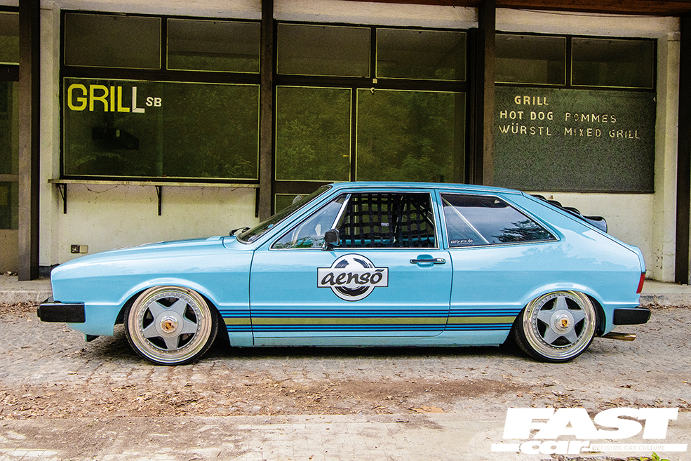 The car you’re looking at here is, in essence, doubly retro. You see, while there’s been a massive and unmissable resurgence in enthusiasm for cars which exist in the hinterland between classic and modern-classic, there is (and always has been) a hardcore of enthusiasts for whom these retro heroes have always been where it’s at. So as time creaks inexorably onward, we’re treated to a whole extra dimension of modifying; whereas once there was a polarised choice between ‘modify in the classic style’ or ‘modify according to current trends’, there’s a fresh possibility that’s elbowed its way between the two, and this fabulous blue modified Mk1 Scirocco is a clear representative of that. This low, smooth, clean and aggressive Dub has been built in the style of the German show cars of yore, something that you would have expected to see scooping trophies back in the late-nineties and early-noughties. If you’re a regular reader with a collection of PVW back issues, dig out some mags from a couple of decades ago and you’ll find the show reports crammed with builds like this… although this is no period throwback, but is in fact a fresh new build.